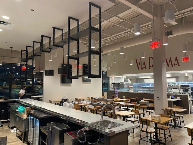 Encore recently completed the buildout of a 3,060 SF cold dark shell space into a Via Roma restaurant in Camp Springs, MD. The project included coordinating and working closely with the owner’s foodservice equipment, LV/AV, and security vendors. The project consisted of custom doors, included a bi-fold glass window system, custom millwork with stone tops, epoxy and ceramic tile floors, painting, accessories, sprinkler, mechanical to include new hoods with Ansul systems, plumbing, electrical, and fire alarm.